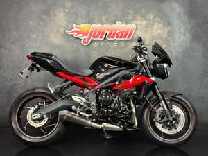 This is a pristine bike that comes with a fantastic service record and is fitted with some great extras. The Street Triple is an extremely popular bike, representing fantastic value for money, offering superb handling, and with a claimed 105bhp they are great fun to ride. This is the uprated 'R' model offering radial brakes, fully adjustable suspension, and a digital dashboard. This particular bike has a SC Project exhaust that sounds superb, a tail tidy, bar end mirrors, Evotech frame protection, paddock stand bobbins, Triumph billet levers, fly screen, Evotech radiator guard, and a seat cowl.